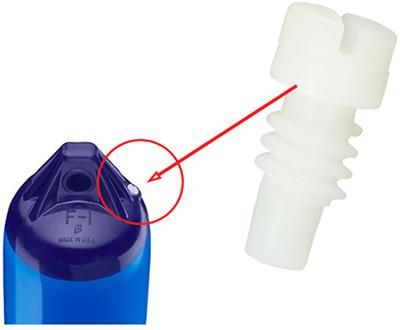 | 適切なサイズまで製品を膨らませたら、ポンプ(および使用しているアダプター)を取り外し、白いキャップを締めます。キャップをバルブケーシングの上部と面一になるまで締めてください。この位置を超えてキャップを無理やり締め付けるとバルブが損傷します。白いキャップを完全に締めることで、フェンダーまたはブイが完全に密閉されます。 注意:電動工具や鋭利な道具を使用して締め付けないでください。キャップがバルブを貫通してしまう可能性があります。空気注入後は速やかにキャップを確実に締めていただきますようお願いいたします。 |