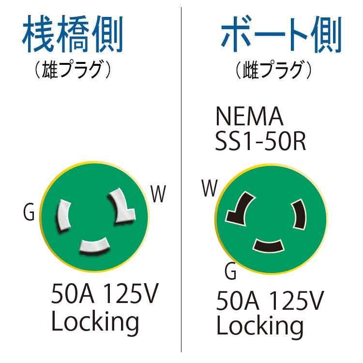 マリンコ 「 EEL(イール)」電源ケーブルセット、50A 125V、長さ7.5メートル