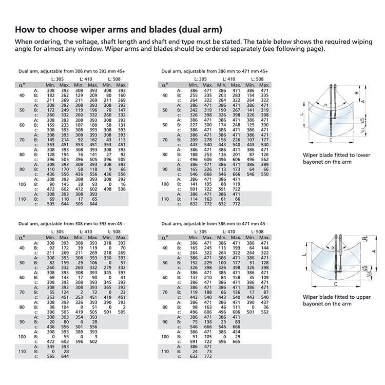 例:ブレード長410mm、アーム長366mm、ワイプ角度120°の場合