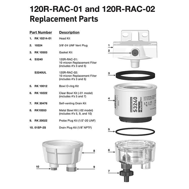 Racor フィルター120R-RAC-01 ガソリン See-Thru Outboad